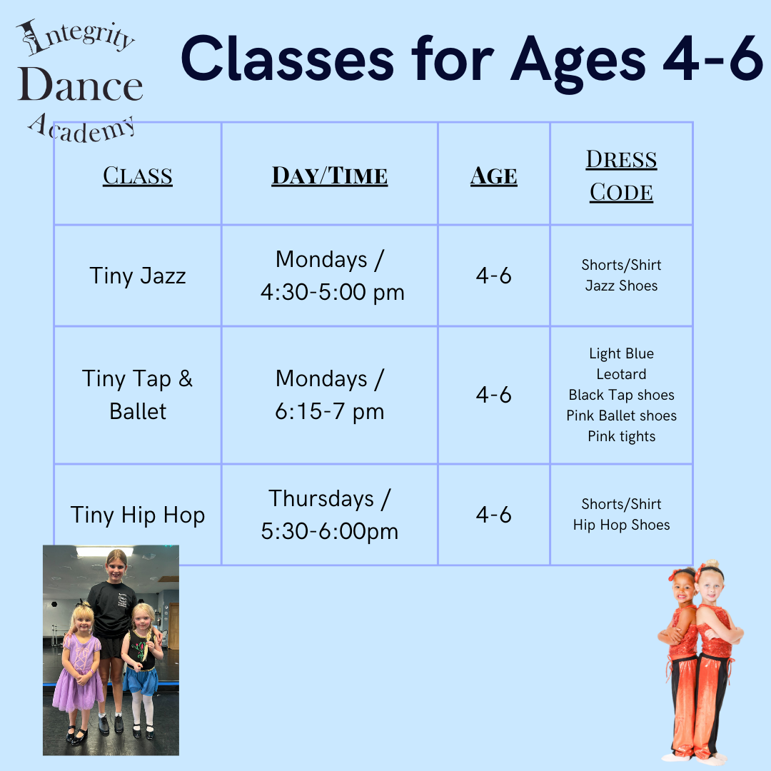 Our Tiny Dance classes are for children ages 4-6!